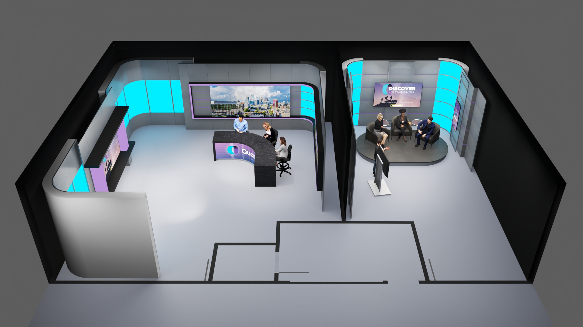 I led the design and project coordination of a custom, multi-set broadcast studio for Quantum Group, a financial services firm that helps advisory practices grow through insurance solutions, strategic marketing, and operational support. The studio was designed not only for Quantum’s internal productions, such as interviews and digital content, but also as a rentable space adaptable to a wide variety of client brands and broadcast formats.