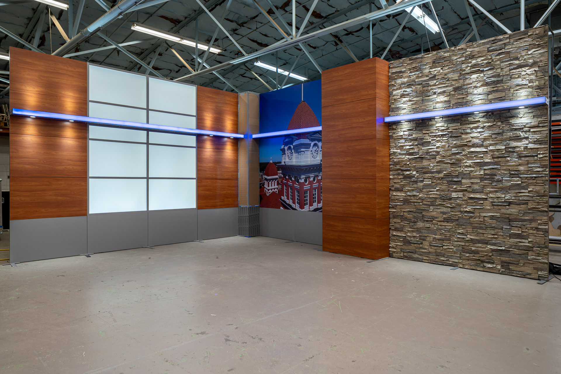 This gallery presents a selection of my set design work from the past 1.5 years, representing projects across broadcast, corporate, education, healthcare, and government clients. Each set was designed to balance cost-efficiency with strong visual identity, giving organizations adaptable solutions to launch, upgrade, or expand their productions. The collection demonstrates the breadth of my work and how I create individuality within our Modular Set Frame System.
